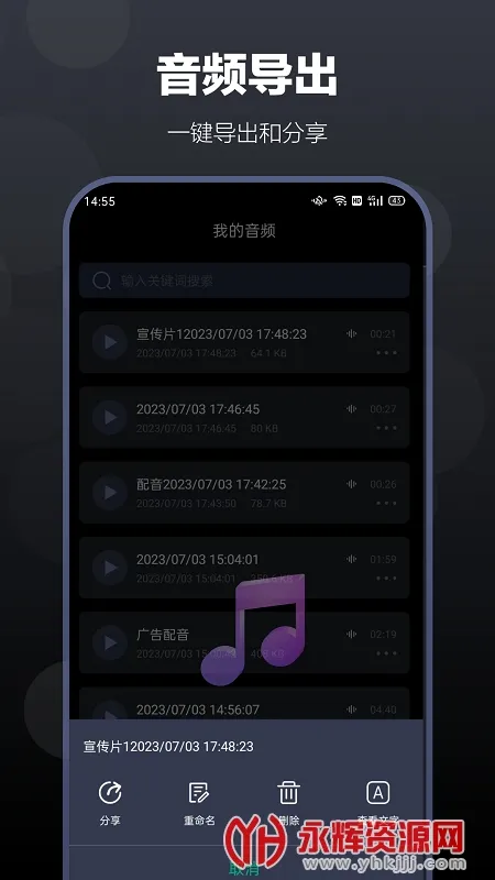 其功能丰富,有个性化背景音乐,能自由进行音频编辑,合成文件可一键导出和转发。亮点众多,智能配音且操作简单,发音人选择丰富。适用于广告、播音、外语、广播、有声书等多种配音场景。v1.0.8版本还优化了文字转语音效果、修复了bug 。