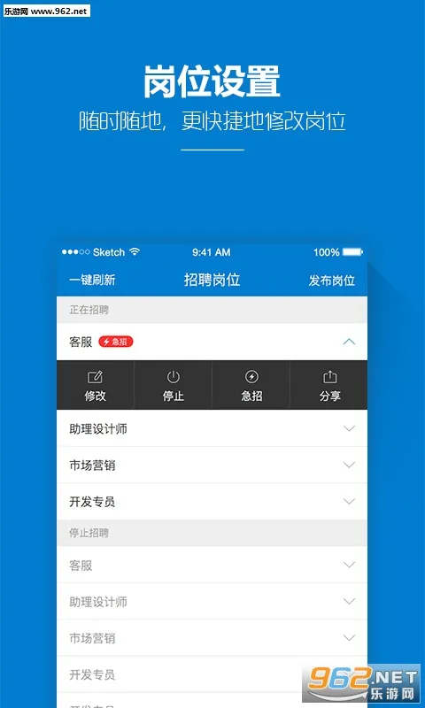 能直观找到附近人才,适合招聘行政或财务岗。在线聊天可与求职者初步沟通。海量简历库,满足多样需求。实时管理岗位,发布、刷新、分享职位轻松完成。