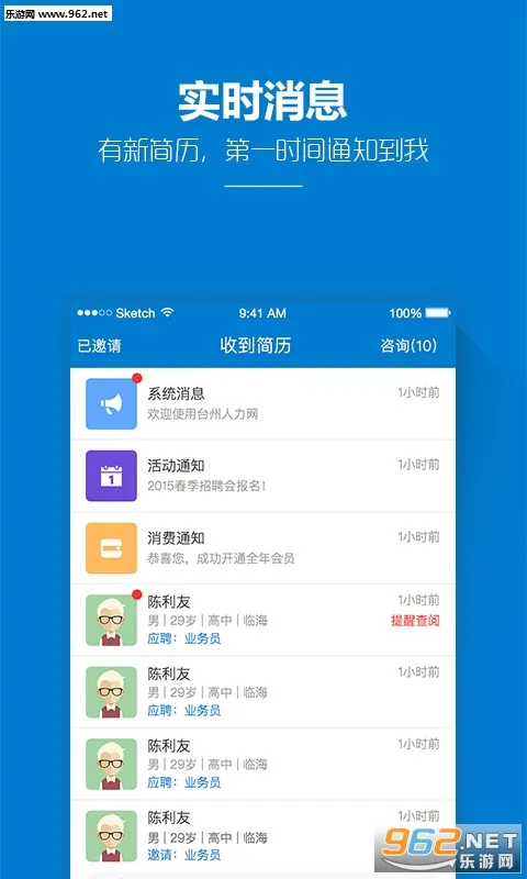 2、通知及时:一旦有人投递简历,手机立刻收到提醒,确保不错过优秀员工。