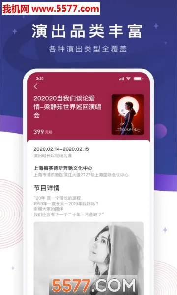 4、信息及时:会第一时间推出最新的动态消息,实时推送演出资讯,让用户不再错过精彩演出。