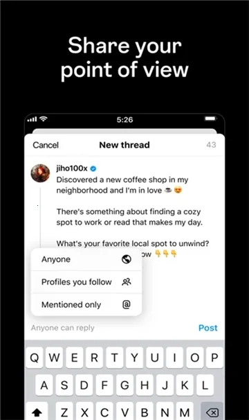 4. 自由表达观点,可启动新线程展示想法观点,还能控制谁能回复,拥有属于自己的表达空间。
