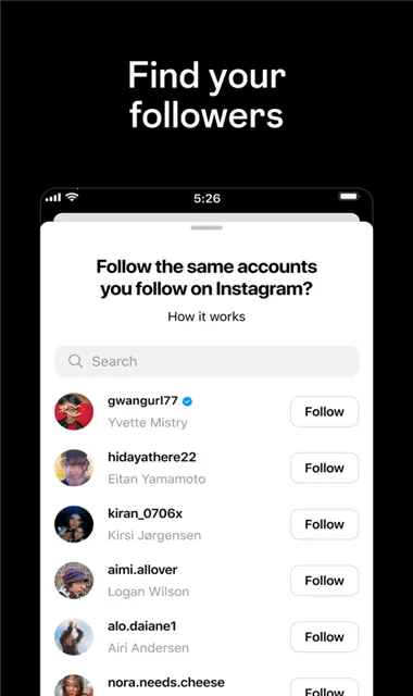 1. 轻松关联Instagram,能自动关注Instagram上关注的相同帐户,还可发现新帐户,让您快速与熟悉及新的朋友互动。