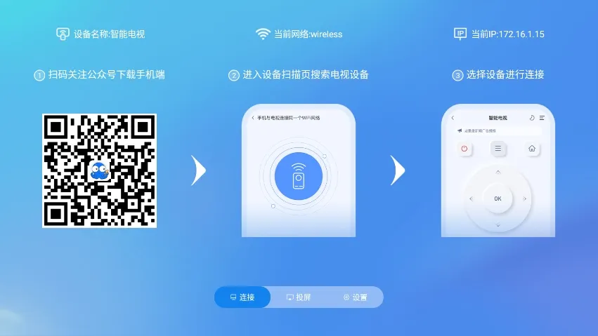 2 操作简单,无需繁琐步骤,按提示操作就能快速连接设备,还能自动识别电视机型号,带来精准操作体验。