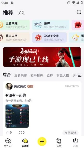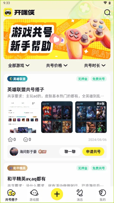 开嘿侠是一款全新打造的游戏社区互动平台,为游戏爱好者提供账号共享、社交互动等服务。