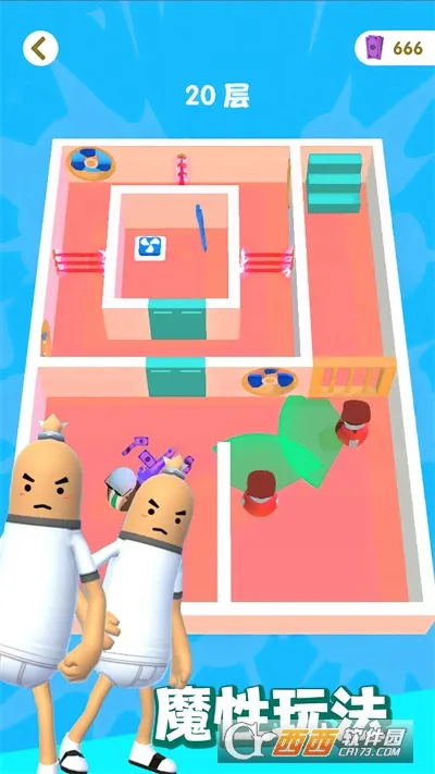 **特色亮点**:采用可爱搞笑的3D风格,创意俯视视角令人眼前一亮。每周更新关卡,可常体验新鲜玩法。关卡充满惊喜,难度不断增加,值得反复挑战。