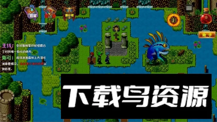 3. 在墓地完成祭拜后,会出现鱼人首领,将其击败;回家与爷爷道别,从右下侧的小路进入迷途森林,与老人对话后前往地图顶端的清水滩。