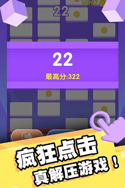 2. 玩法简单易上手:规则和操作都很简单,利用游戏画面下方的4个发射按钮发射长形方块,填补四行砖块中缺失部分消除整行砖块,点按或划屏操作轻松上手。