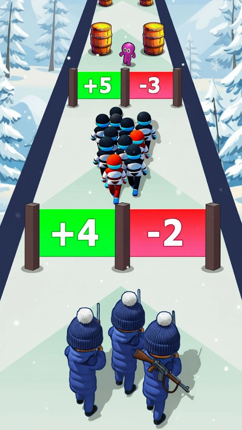 这是一款快节奏火柴人跑酷游戏,玩家需带领火柴人军队在色彩缤纷的 3D 世界中奔跑。游戏中,每个选择都至关重要。玩家要扩充队伍,在激烈的 3D 跑酷过程中射击强盗收集金币,还要击败敌人。同时,需带领火柴人突破障碍,征服敌人。奔跑、闪避、战斗,每一扇门都可能改变命运。每关都会遇到更强的敌人和更激烈的战斗,不断带来挑战。