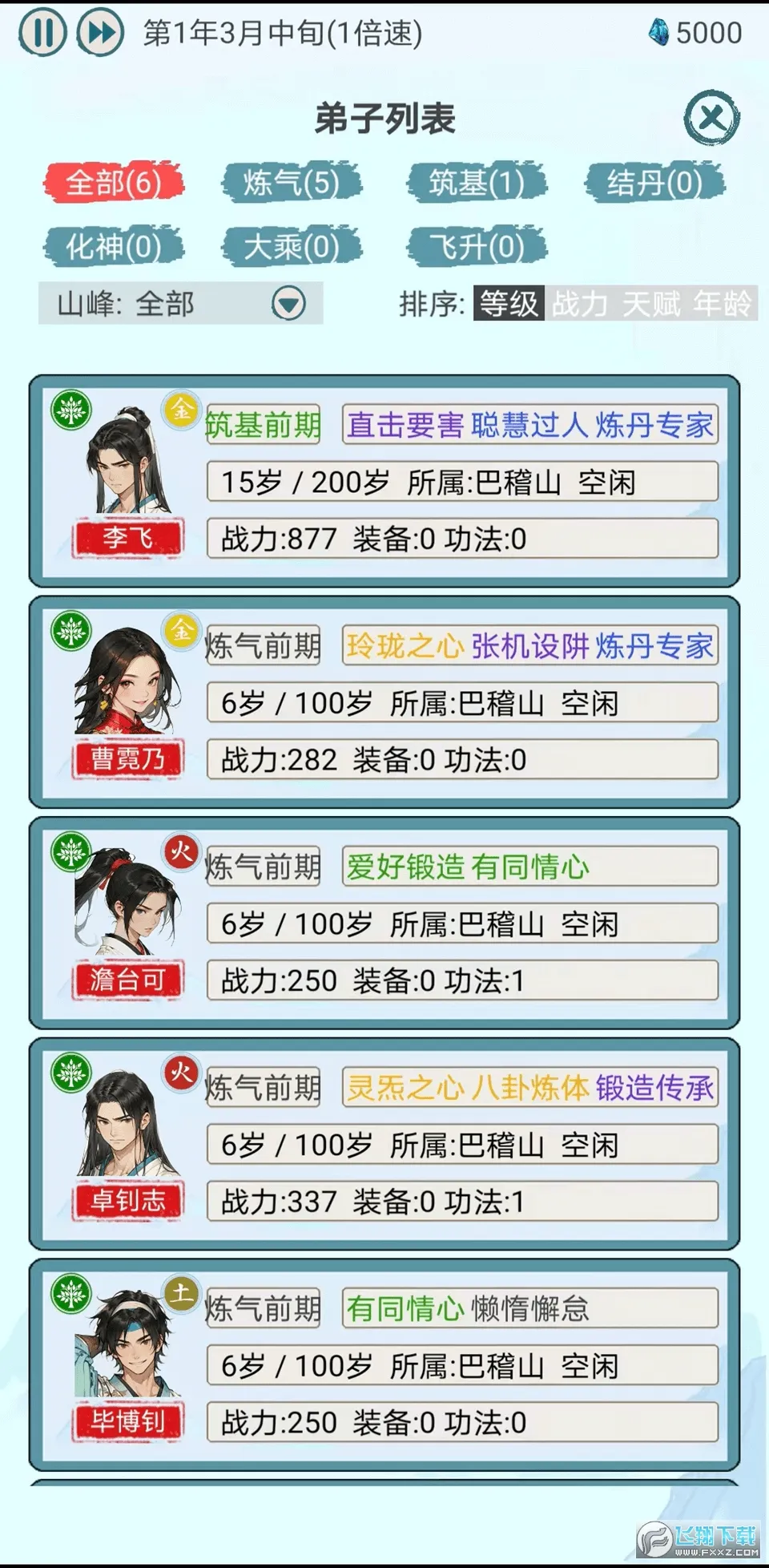 4、弟子多样:近百种天赋随机组合,通过春季试炼选拔弟子,分配到各个分院,人尽其用。