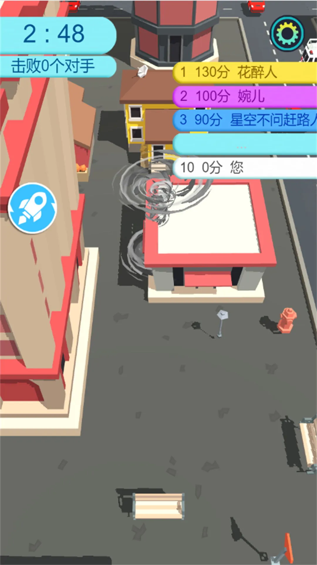3. 游戏过程中,你将从一个很小的龙卷风开始,随着游玩进程体积越来越大、移动速度越来越快,能吞噬各种物品,带来独特的成长体验。