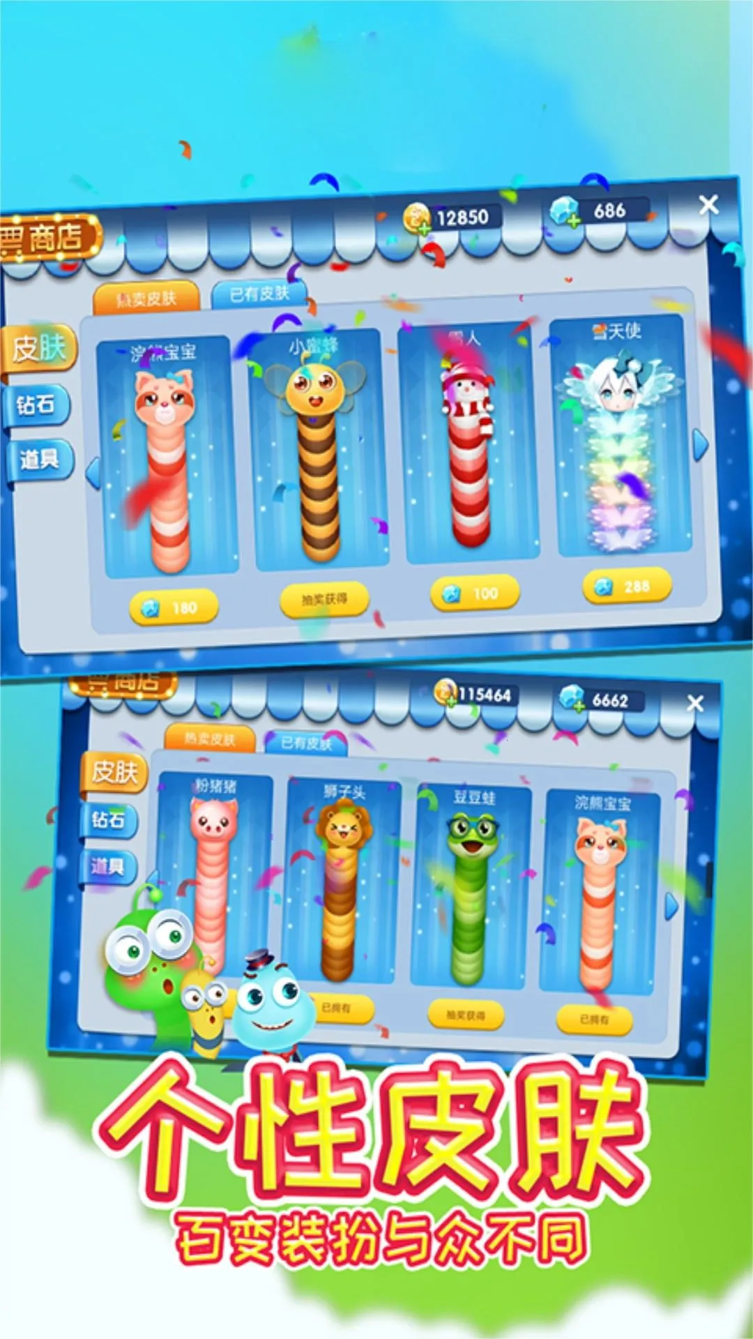 4、自由定制外观:贪食蛇的皮肤和装饰可以自由定制,让自己的蛇体可以散发出独特的风格。