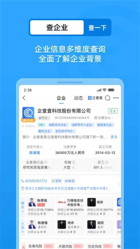 不管你是企业和机构、金融法律财会从业者,还是业务销售、投资者、媒体从业者、采购人员或职场白领,企查查都能帮你进行企业背景调查、选择合作伙伴时评估风险、监控企业风险、开拓商机、深挖企业关系、辅助商业决策,让你在商业活动中更得心应手,赶紧来体验吧!