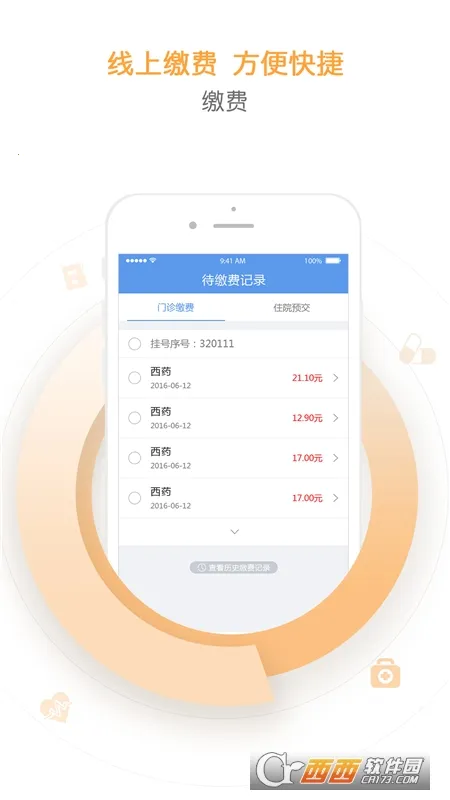 3、支付轻松:告别来回奔波,一键支付,在线即可完成门诊缴费。