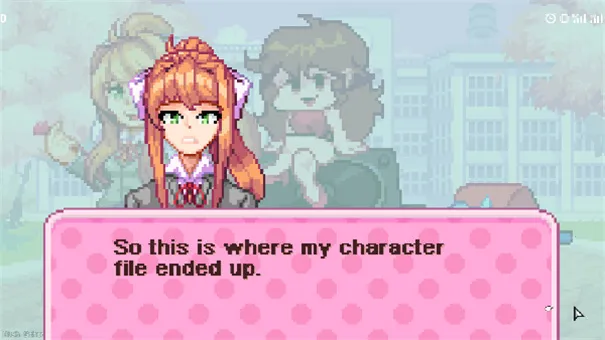 3. **人物画风新颖**:在这里你将会邂逅DDLC之中的角色莫妮卡,人物和画风很新颖,整体玩法比较有趣,能和她展开一场完全不一样的校园音乐比拼体验。