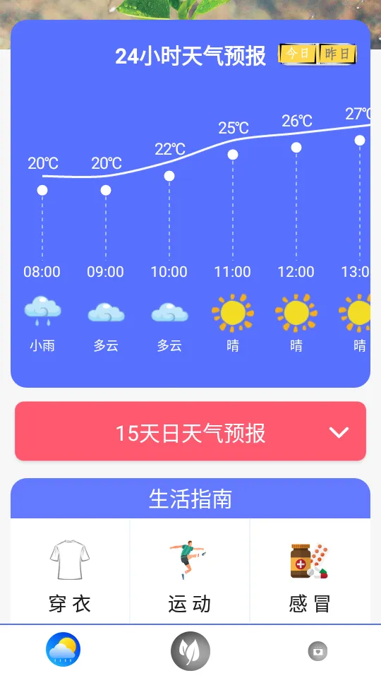 2. 天气逐时预报超贴心:实时掌握24小时天气变化,提前预防当天天气温差。