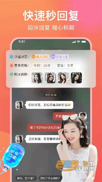 这款软件的优势显著。所有用户都经过平台认证,不用担心安全问题。它有着丰富多样的聊天方式,加密的聊天过程也保障了用户隐私。智能AI匹配算法能快速为用户匹配到投缘的异性,聊天秒回。