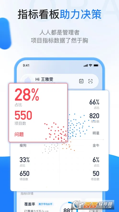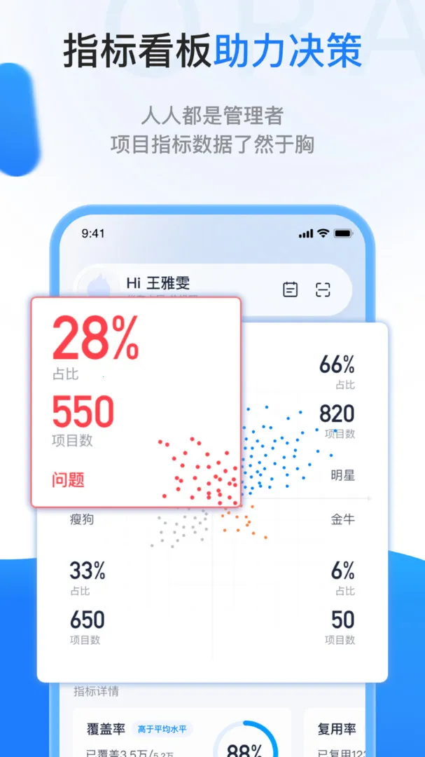 4. 各类项目指标数据清晰呈现,以数据指导日常工作,使人人都能成为管理者,便于做出更科学的决策。