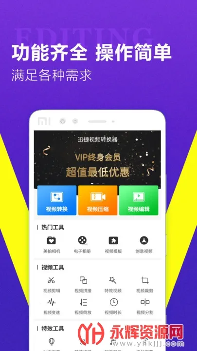 这款软件支持多格式转换,像MP4、AVI、MOV等格式都能轻松转换,且支持1080、720等分辨率输出,转换时不损坏原视频质量。它还支持批量转换,可一次性处理多个视频文件,效率很高。同时具备视频压缩功能,能节省手机存储空间。