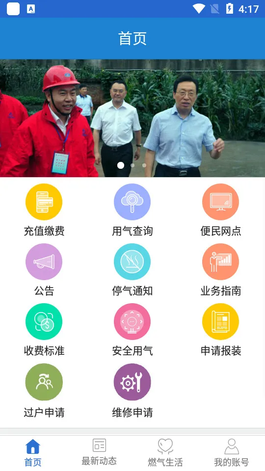 账户档案清晰,可统计查看账户信息与文件记录。充值支付方便,选择支付项目就能快速缴费,还能跟踪业务进度。服务网点查询精准,能清晰看到位置。煤气中断通知及时,通过消息提醒实时知晓。商务指南可助用户掌握各类业务类型。