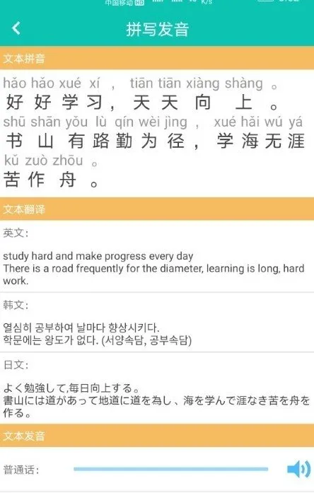 快查拼音是一款助力孩子快速掌握拼音知识的学习软件。涵盖丰富拼音发音及语言知识,有一键翻译等功能。含多种查询方式,融合游戏,内容丰富,以贴切生活用语助孩子轻松学拼音,打好基础。