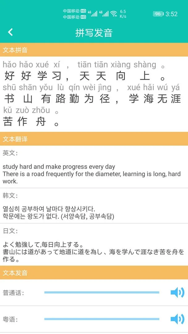 软件功能多样,能根据汉字查拼音(支持多汉字查询)、查五笔字根,还能根据拼音得同音字。多种文本输入方式,如语音、图片、拍照识别文字等。不仅可查汉字拼音,还能进行英文、日文等热门语种翻译,学习各地发音,包括多种方言。