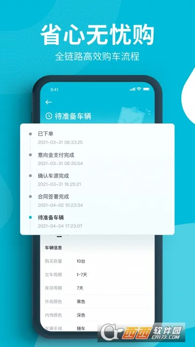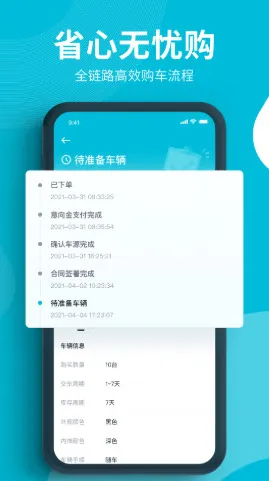 3 流程高效,在线寻车、报价、支付意向金及尾款、选择物流金融服务等汽车交易流程轻松完成,还建立线上线下联动机制,提升车源流通和交付效率。
