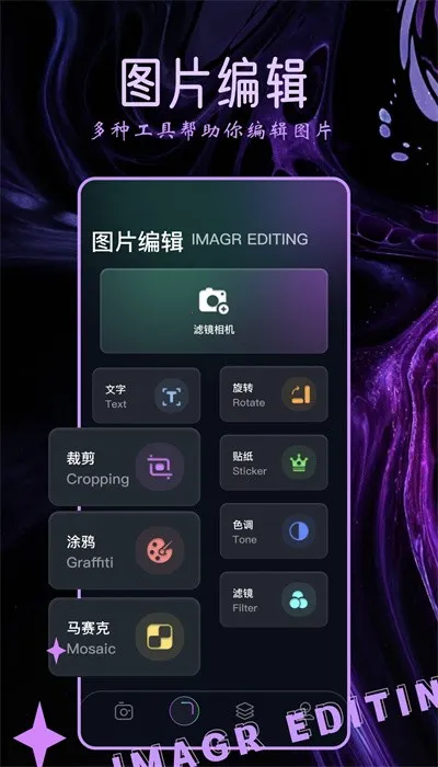 4. 功能丰富超强大:具备海量滤镜一键出片,涵盖近千款风格,还有全能编辑功能、专业调色工具,以及智能美颜、动态相机等特色功能,让照片编辑和拍摄更轻松有趣。