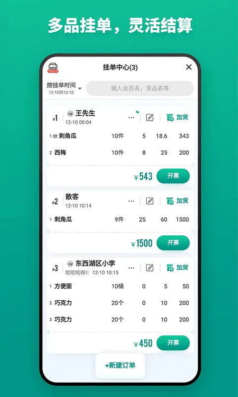 其亮点诸多,选货开单简便,极速录货,多品挂单灵活结算,开单数据直观。