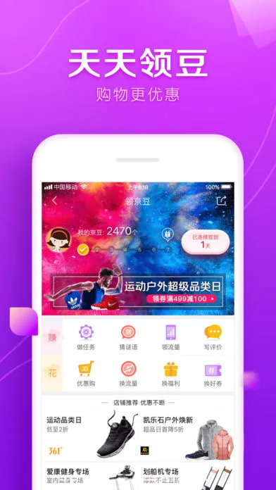 4. 特色活动福利多:每天签到瓜分京豆、砍价、1元众筹礼盒等,新用户还能享1元商品抢购福利,还有智能推荐系统,购物体验超棒。