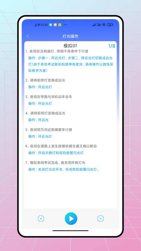 如果你想知道快呀驾考每天几点开始,那可得好好了解一下这款驾考学习平台。快呀驾考专为驾照备考人士打造,上面有全国各地的驾考题库资源,题型超全面,全科目题目还持续更新,能让你随心所欲刷题进步。它有多种刷题模式,像专项训练、每日一练等,助力高效备考。这里还有免费网课资源,点击感兴趣的网课内容就能在线学习,通过高清教学视频,轻松掌握各类知识点和考点。而且它能自动收藏错题与重点题目,方便专项练习。另外,平台会提供个性化学习计划,让你的备考有条不紊,还能实时查看学情报告,记录学习时长和进度,科学管理学习。操作简单,界面清晰,不管是初学者还是备考族都很适用,能帮你轻松拿下驾考,随时开启学习模式,积累知识,高效备考。
