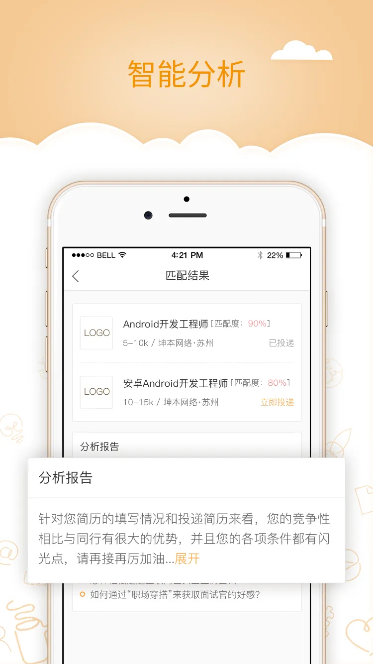 4. 操作简便:可使用平台里简单轻松的简历模板,在线处理方便,能根据自身情况筛选工作,快速找到满意工作。