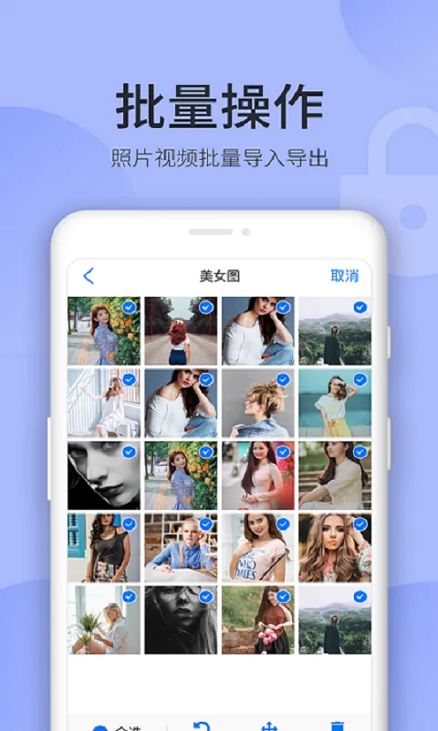 可快速隐藏应用并设置密码,还能随时随地浏览、选择手机本地需保护的隐私照片视频,支持批量导入,方便快捷地为您进行隐私保护。