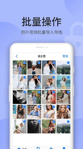 优势也很突出,能快速隐藏应用,为应用设密码,随时随地浏览隐私照片。可自由选择本地需保护的隐私照片视频,还能批量导入。