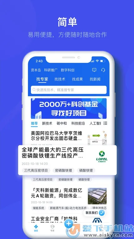 科企岛是一款结合产学研用的互联网技术服务平台。高校科研院所专家在此创建工作室,展示科研成果,解决企业技术需求,还开放实验室共享。