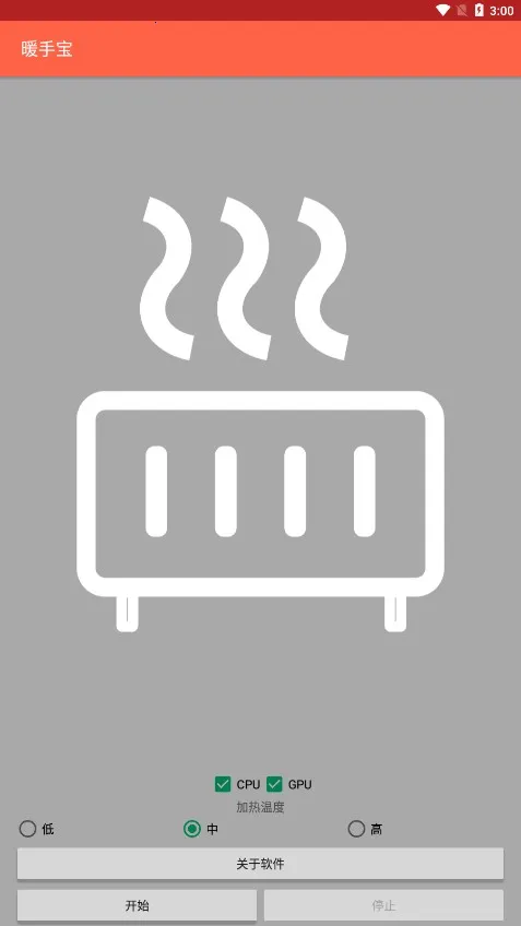 暖手宝是一款利用手机CPU运行发热来取暖的应用。能让手机化身为暖手宝,榨取CPU性能快速发热,有多种温度调节模式,可实时监测温度,安全节能,界面简约无广告,助你抵御严寒。