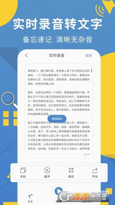 会议记录助手是一款办公软件,支持一键开启会议办公。可实时录音、记录语音笔记,实现语音转文字并复制导出。具备多场景录音、音频剪切转换、语音翻译等功能,能高效管理会议文件,助力用户轻松办公 。