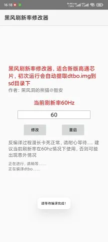 黑风刷新率修改器2026最新版本是一款实用辅助工具软件,能提升游戏画质与刷新率,优化显示效果和操作流畅度。设置简单,新率选择多,一键开启,支持主流游戏平台设备,但需ROOT权限,使用前要了解相关条件与注意事项。