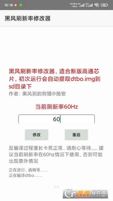 此版本亮点众多。它设置简单,开启方便,且可供选择的刷新率多样,还支持重启以及验证等操作。不过,使用该软件需要ROOT权限。