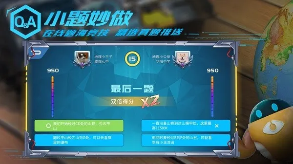 这款软件特色众多。有地理竞赛,能和同学比拼祖国邻国与临海等知识,还有全国竞速排名,激发练习乐趣。QA 小题妙做、妙懂王者挑战等,6300 精选真题在线对决,可激发学习兴趣与斗志,掌握必考点。同步教材考点动画及重点必考专题视频,专题闯关练习全面覆盖教材,演绎知识必考点。对于 7 大重难点知识主题,如等高线地形图等,通过 AR 黑科技 360 观察,全方位理解。