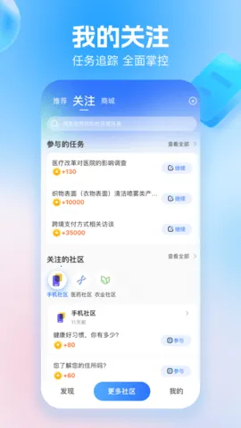 2、能让用户通过完成各类趣味小任务或品牌任务,更好地探知自我,与同行交流行业经验,探索未知领域,在自我成长和助力行业的同时获取额外收益。