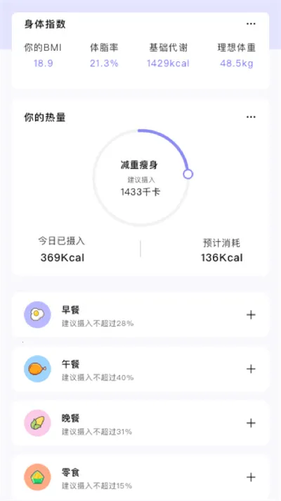1. 专为健身减肥等用户打造,能帮助用户轻松知晓各类食物热量,避免摄入过多热量,养成良好饮食习惯,助力身材管理。