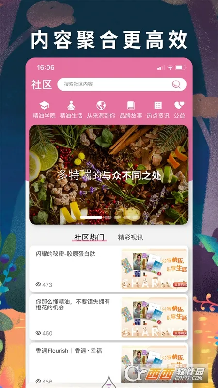 3. 社区互动乐趣多:拥有社区功能,您能加入其中和万千用户一起分享使用某款精油的体验,发现精油在各领域的益处和乐趣,还可互动交流。