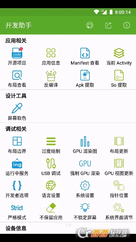 2、功能丰富实用,可查看应用布局、数据、系统日志,反编译应用,提取文件,查看开源项目等,满足安卓开发各种需求。