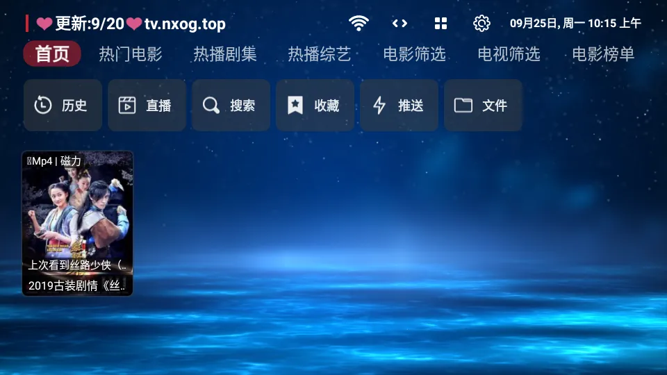 其TV版更是强大,是智能电视直播与点播神器。2025年最新版集成超132条接口,覆盖央视、卫视、地方台、4K频道及影视轮播,适配全类型资源,日均更新超千集。支持直播与点播双模式,内置多条播放源自动切换,保障流畅播放。还能进行智能资源管理,实现即点即播无缓冲体验。通过设置功能可对配置地址等参数进行调整,配置地址有多个可供选择,如https:xn--0lqf28wu83a2uw595b.v.nxog.topapi.php?id1等,能让你轻松追剧,享受家庭私人影院的乐趣。