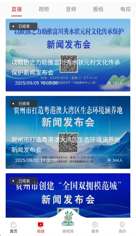贺州融媒安卓版是地方性综合服务软件,能实时播放广播电视,涵盖新闻政务等功能。提供天气公交等信息,界面友好,功能多样,可直播、查交通天气、获便民活动信息,方便市民生活,提升参与感。