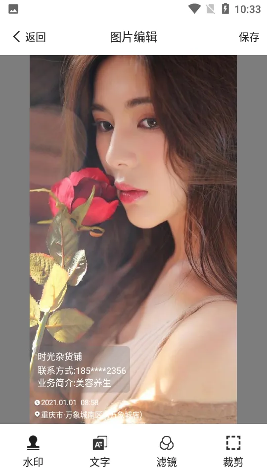 操作简单便捷:定制水印相机操作轻松,选好水印后通过拍摄功能就能简单完成,一键生成水印照片,快速又方便。