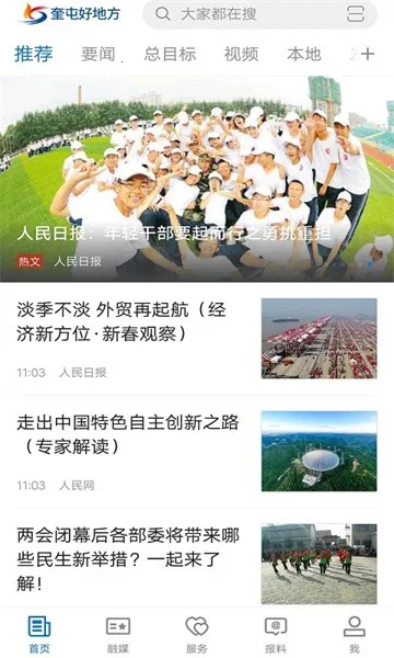 2. 功能贴心实用,设有推荐、要闻、总目标、视频、本地发布、广播、图说、电视等栏目,还能进行政务办事、生活服务等,满足多种需求。