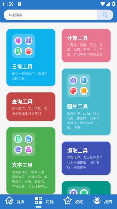 这款软件的安装包小巧,即便手机内存小也能放心下载使用。它提供了海量实用工具,涵盖系统日常、文字图片、计算查询、设备清理等各种类型,还支持搜索相关功能,常用工具可收藏。其优势显著,能提供无限不同类型的手机资源,设计智能化,不占空间,工具使用极速流畅。