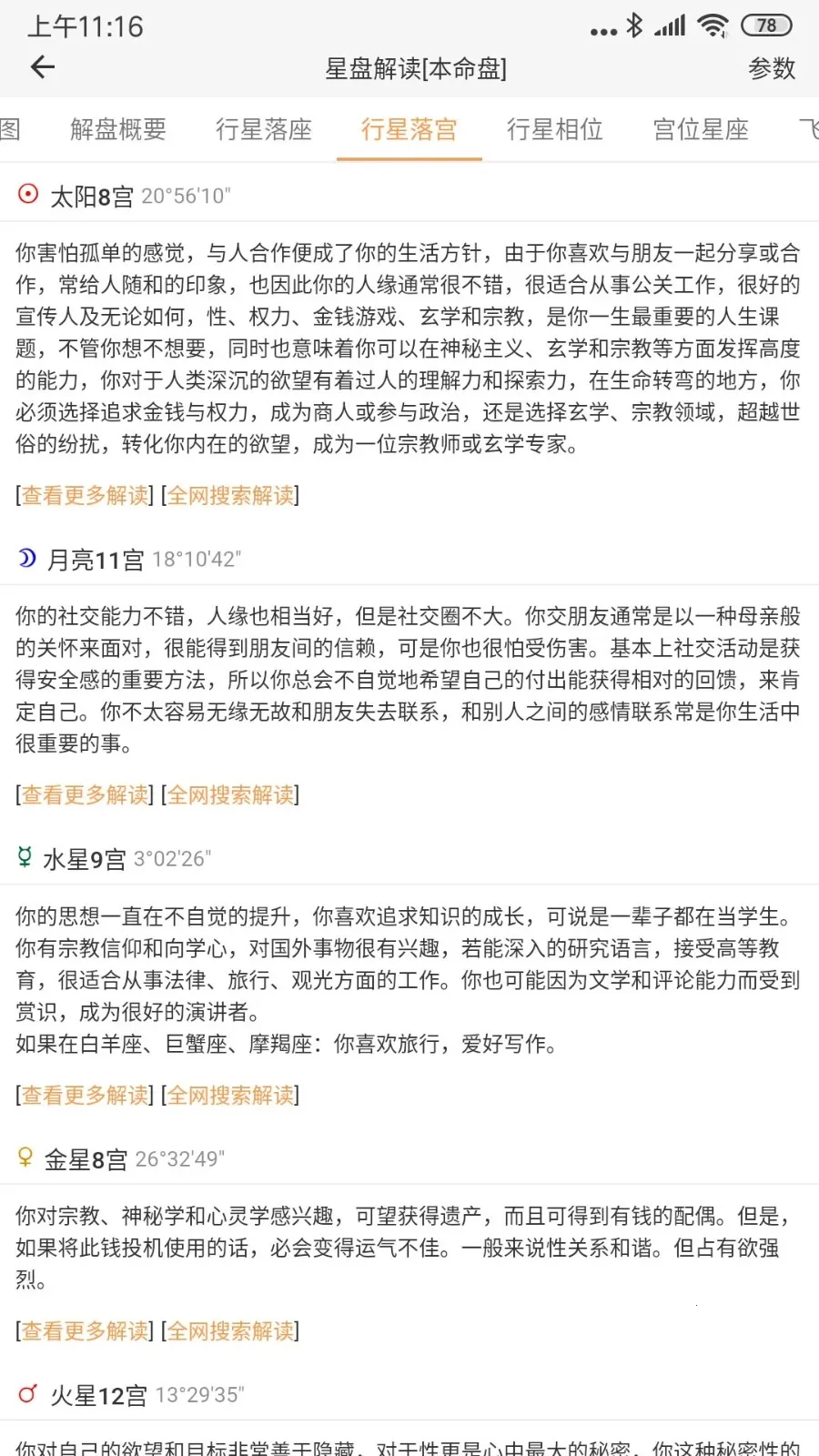 功能丰富选择多:提供本命盘、合盘、推运盘等多种功能,还有丰富的星盘配置、星体配置,支持多种星盘类型,能让用户全面深入了解自己的星盘信息。