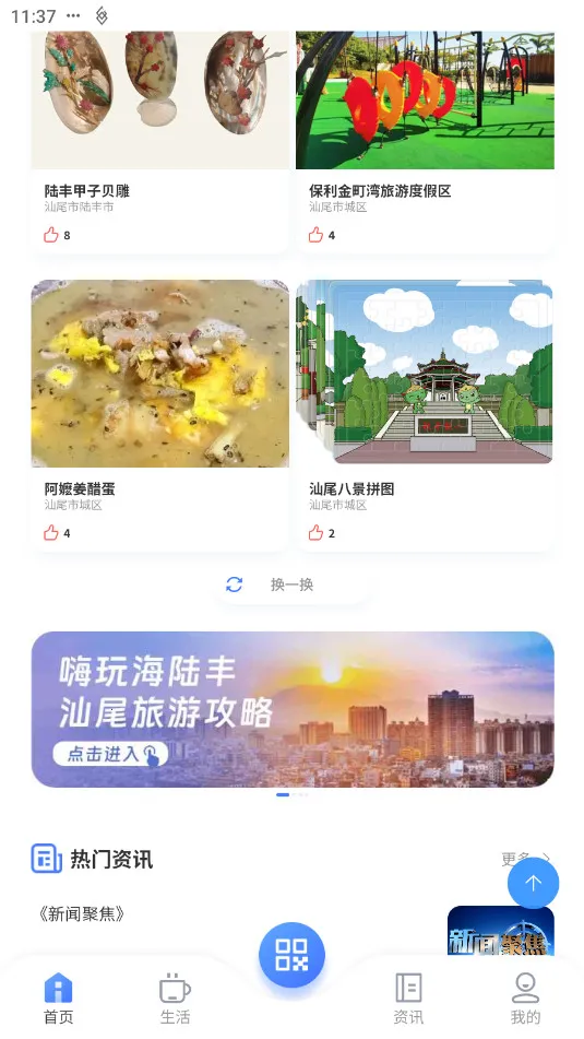 3、资讯权威及时。提供推荐短视频、汕美号、文旅视听、看天下、社会七大频道13个栏目,涵盖新闻、天气、财经等各类资讯,结合汕尾本地特色,带来一手资讯和民生关注内容。